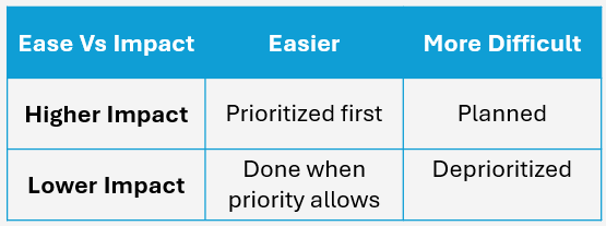 Limitations of the Impact vs. Ease Approach
