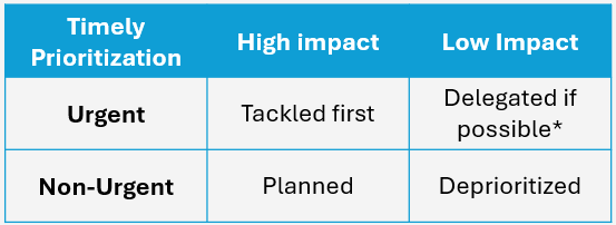 * If an urgent task with low impact cannot be delegated, it should be prioritized based on its expected efficiency relative to non-urgent, high-impact activities.